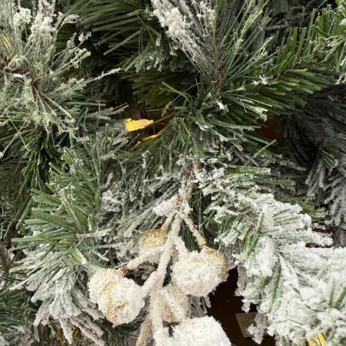 From our National Tree Company collection, this 229cmH (7.5foot) Frosted Colonial Tree is perfectly formed and has 1778 tips. At 124cmW this tree is a great size and comes covered in poinsettias, berries and 700 warm white lights.